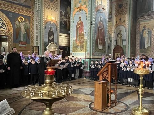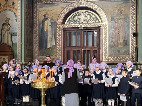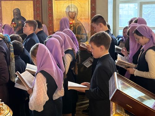 Ученики начальной школы молились в храме Вознесения Господня в сопровождении хора под руководством регента Железовой Ксении Сергеевны а учащиеся средней и старшей школы — в храме святых Жен Мироносиц в сопровождении сводного хора старшеклассников под руководством помощника регента Воронцова Матвея, ученика 11 «а» класса.